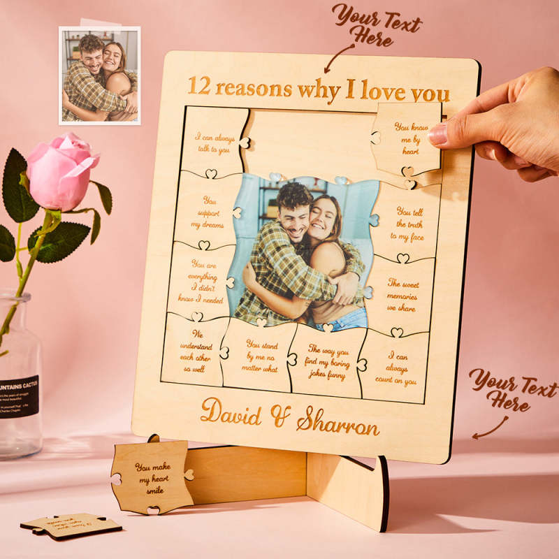 12 Reasons Why I Love You Custom Photo Name Acrylic Wooden Puzzle