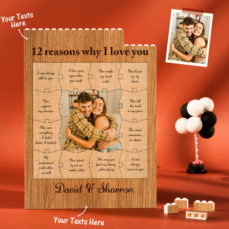 Gifts for Her/Him 12 Reasons Why I Love You Personalised Photo Building Block