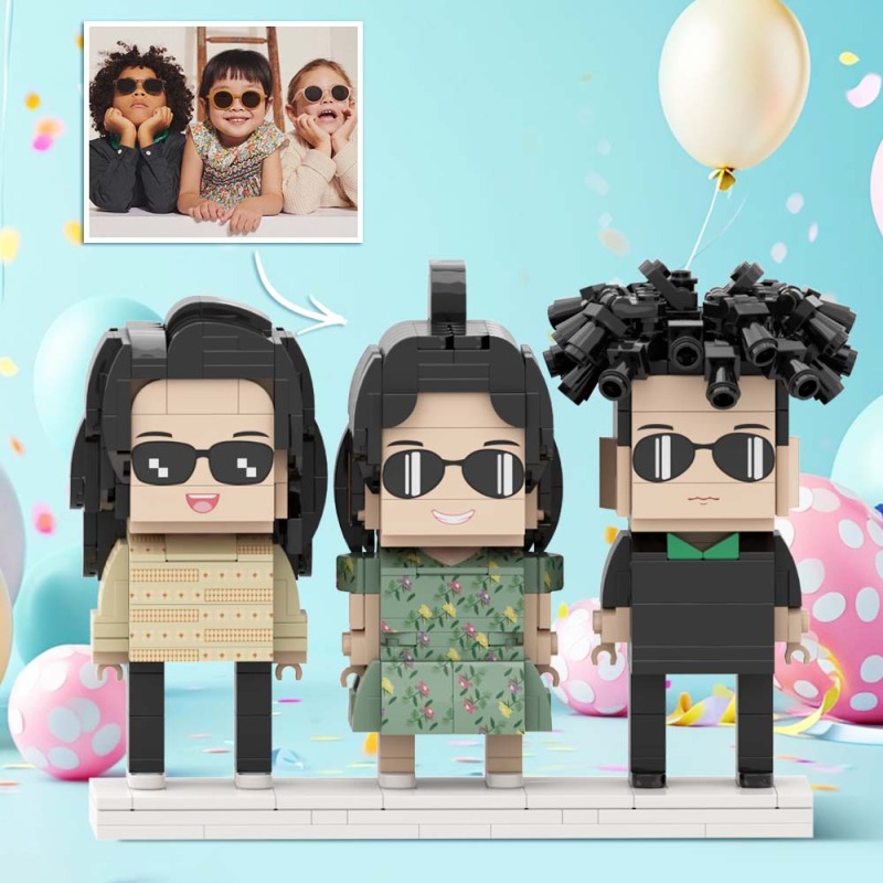 Children's Full Body Customizable 3 People Custom Brick Figures Small Particle Block With Sunglasses