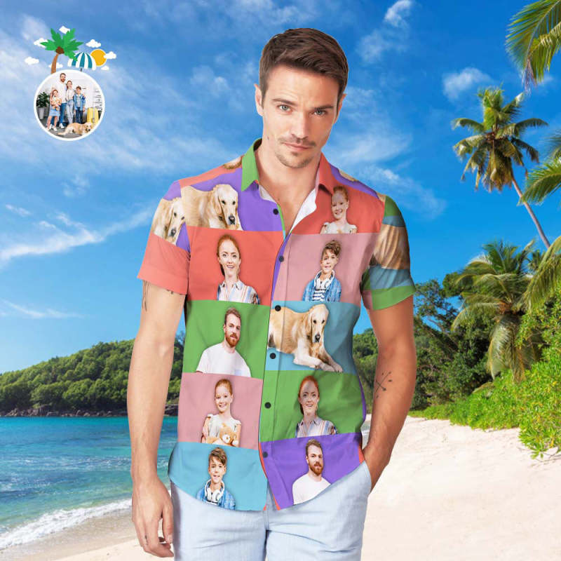 Custom Photo Hawaiian Shirt Men's Popular All Over Print Hawaiian Beach Shirt Holiday Gift - 5 Photos of Family Members