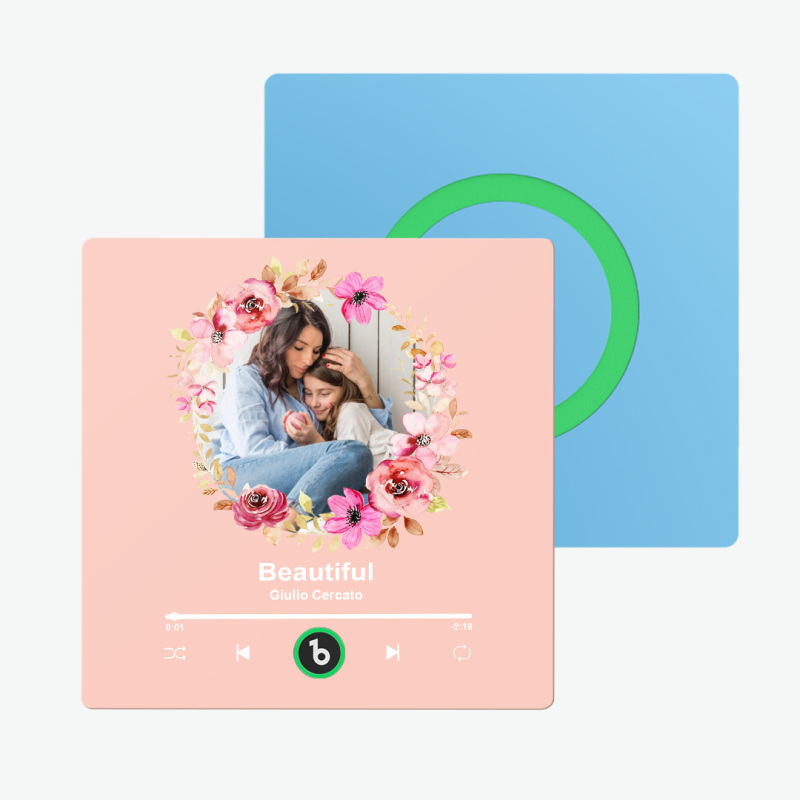 Custom Album Music Magnets for Refrigerator Personalized Memory Photo Magnets Can Play Song Pink Flowers Pictures Magnets Birthday Song Magnet for Mother Grandma
