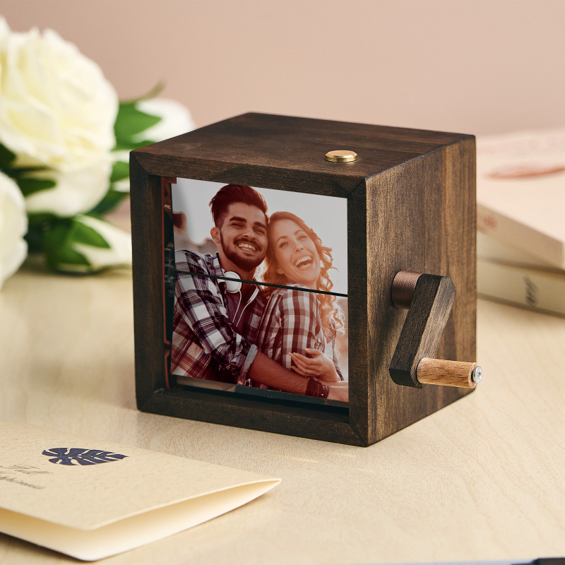 Custom Hand-Crank Flipbook Box Photo Album with Light Black Walnut Baby Photo Cube Frame Creative Gift