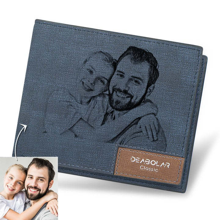 Custom Blue Short Photo Wallet Personalised Engraved Leather Mens Wallet Custom Gift For Him