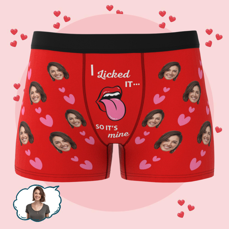 Custom Boxer Briefs with Face Underwear with Photo for Men Personalized I Licked It Boxer Valentines Day Gifts for Boyfriend Husband