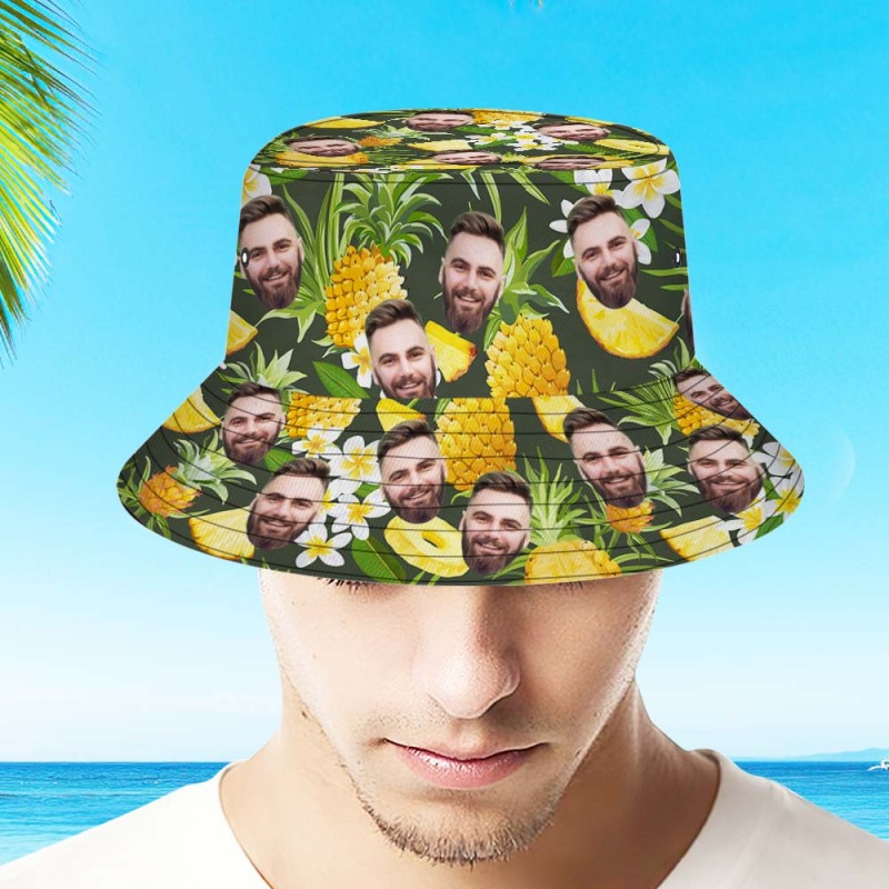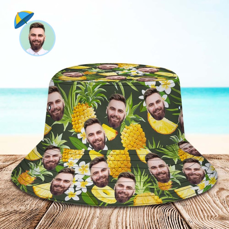 Custom Bucket Hat Adult & Kids Unisex Face Bucket Hat Personalised Wide Brim Outdoor Summer Cap Hiking Beach Sports Hats - Hawaiian Pineapple