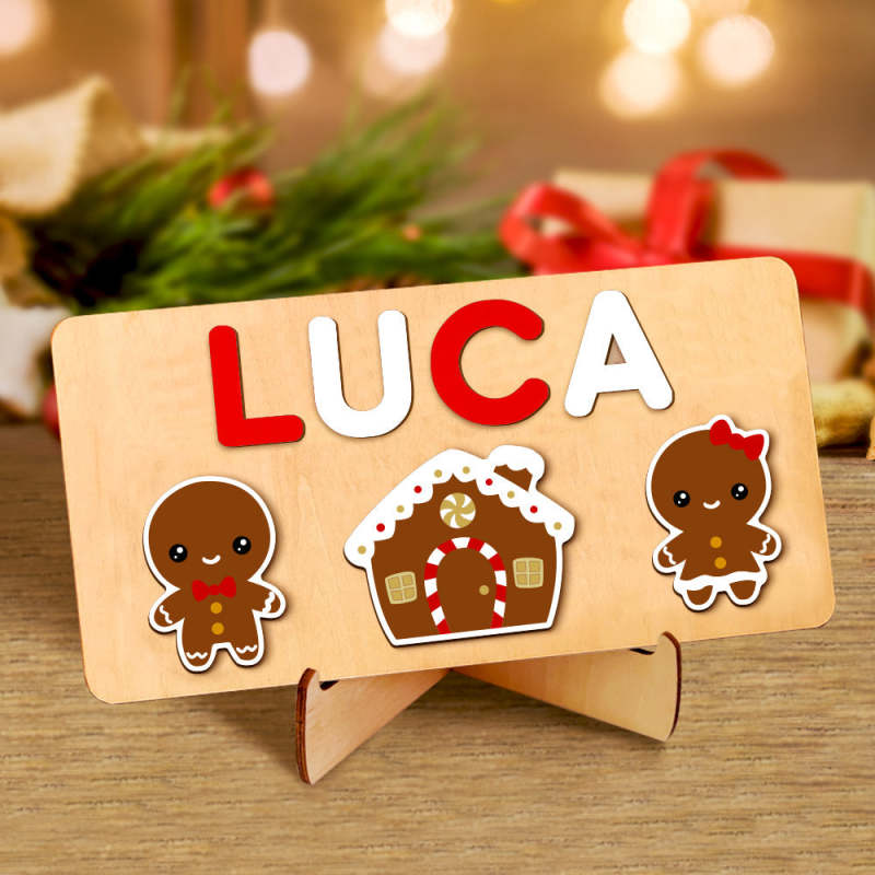 Custom Christmas Wooden Name Puzzle Toy Personalised Name Puzzle Montessori Toy Gift for Baby