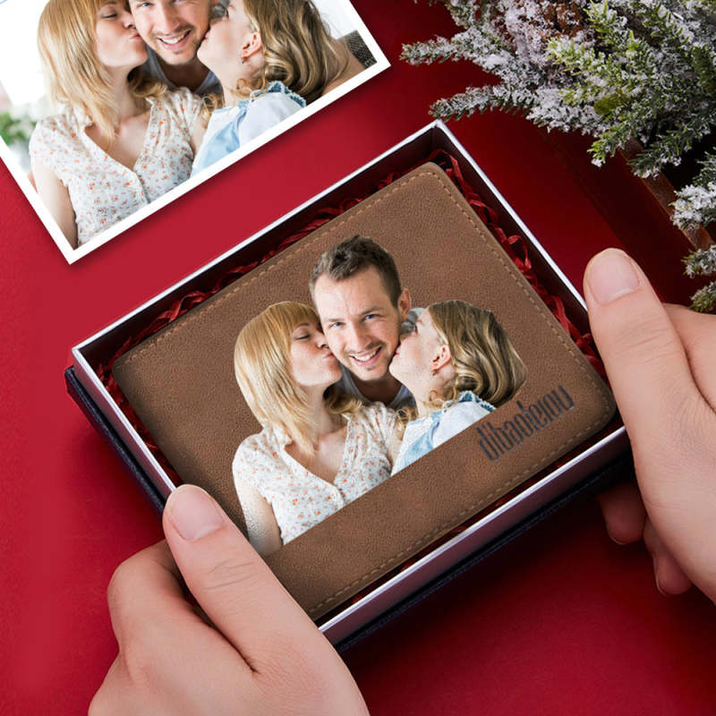 Father's Day Gifts Men Wallet Custom Color Family Photo Wallet Personalised Engraved Text Gift for Him