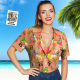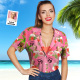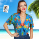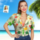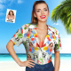 Custom Date and Name Face Hawaiian Shirt Birthday Hawaiian Shirt Red Flower and Palm Tree Shirt