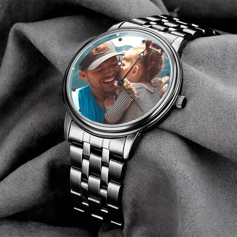 Mother's Day Gifts Custom Watch Engraved Black Alloy Photo Watch