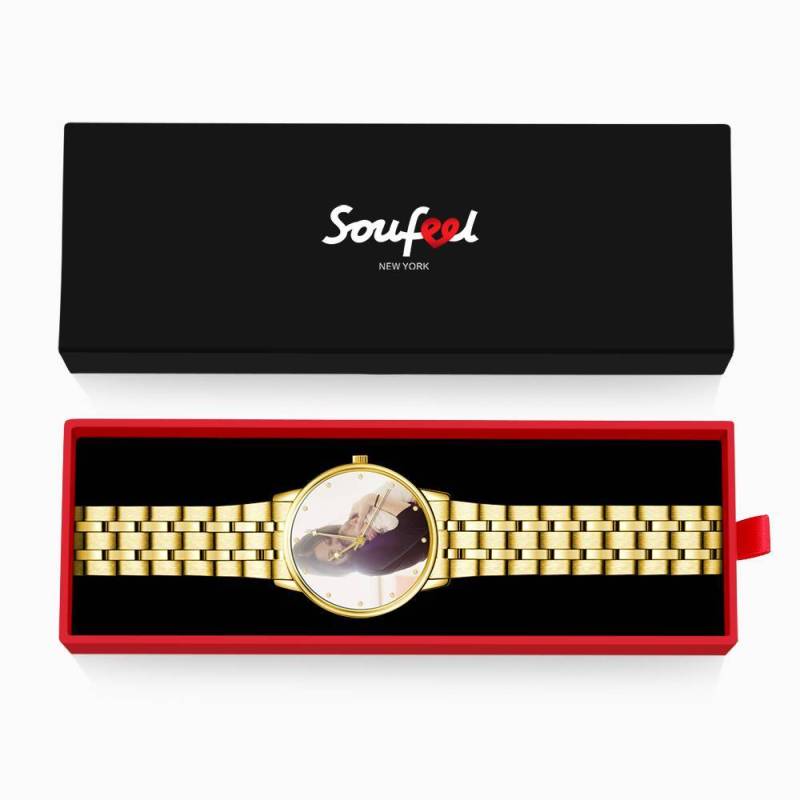Mother's Day Gifts Custom Watch Engraved Golden Alloy Photo Watch