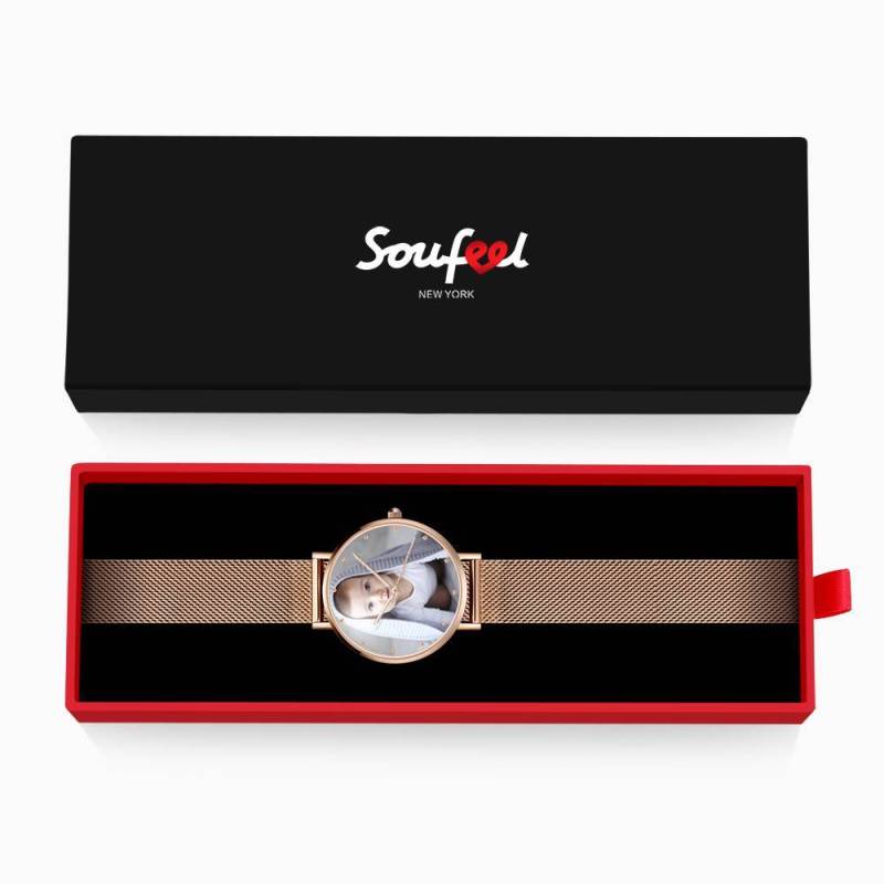Custom Watch Engraved Rose Gold Alloy Photo Watch