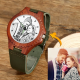 Custom Watch Engraved Wood Photo Watch Dark Green Leather Strap
