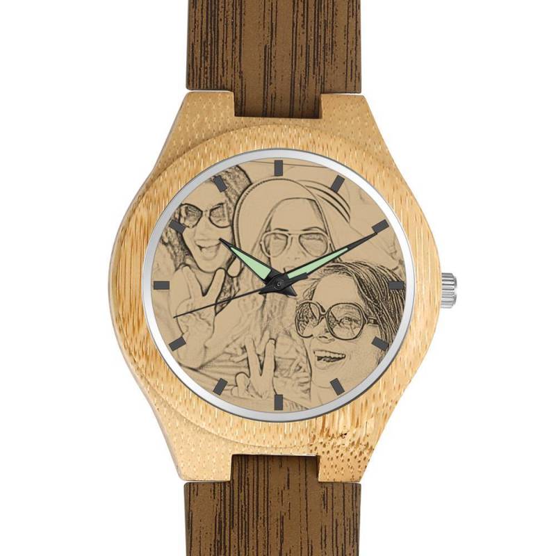 Mother's Day Gifts Custom Watch Engraved Wooden Photo Watch Wood Grain Strap