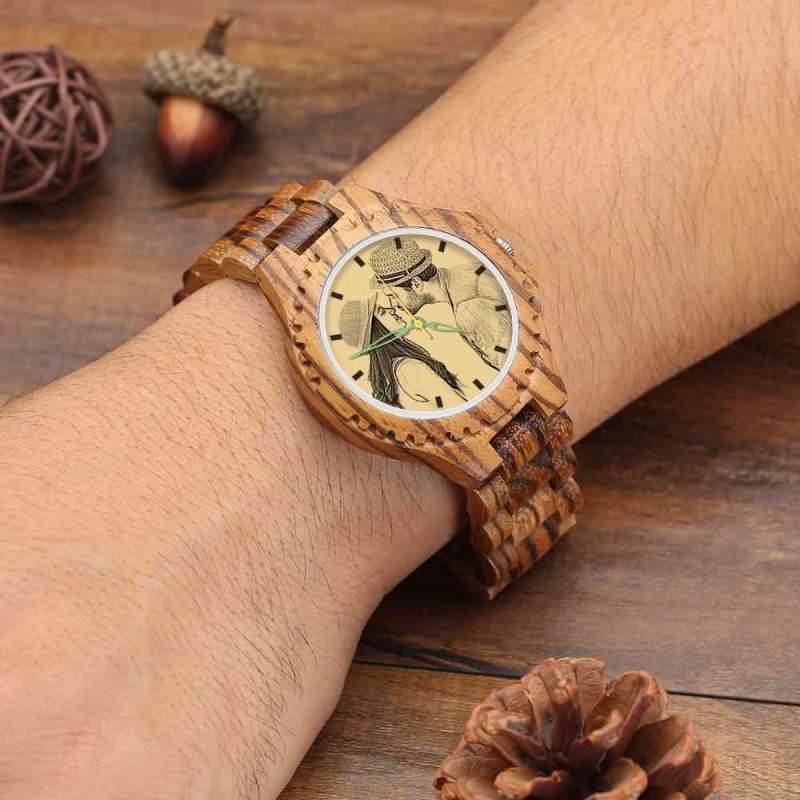 Custom Watch Engraved Wooden Photo Watch Wooden Leather Strap