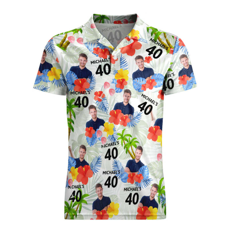 Custom Face Birthday Polo Shirt For Men Personalised Date and Name Yellow Flower And Palm Tree Polo Shirt