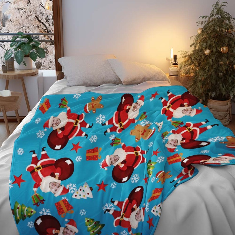 Custom Photo Blankets Custom Christmas Blankets Personalised Photo Fleece Blanket - Santa Claus with Presents