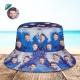 Custom Face Bucket Hat Unisex Personalised Photo Wide Brim Outdoor Summer Hats Blue and White Oil Painting Style
