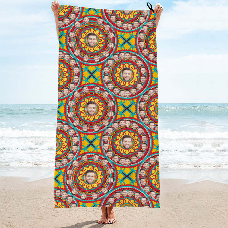 Custom Face Circle Beach Towel Personalised Photo Beach Towel Funny Gift