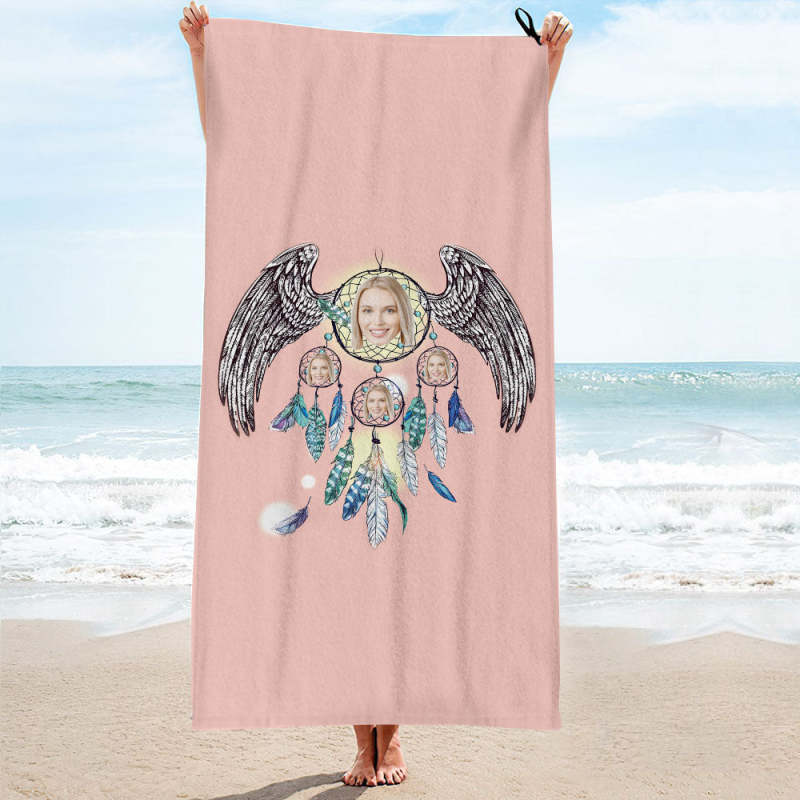 Custom Face Dreamcatcher Beach Towel Personalised Photo Beach Towel Funny Gift