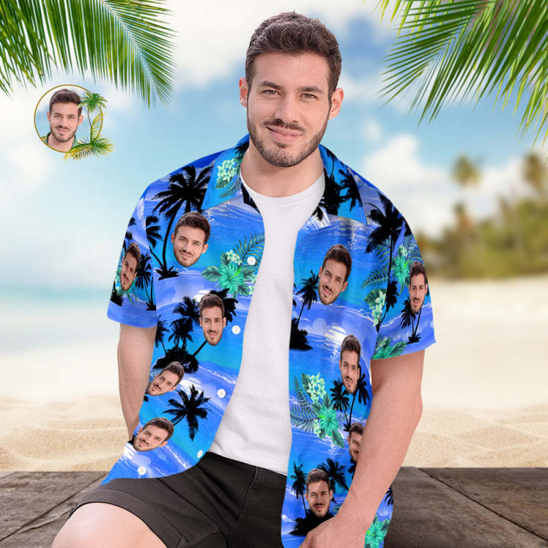 Personalised Shirt Men's Popular All Over Print Hawaiian Beach Shirt Holiday Gift - Blue Coast