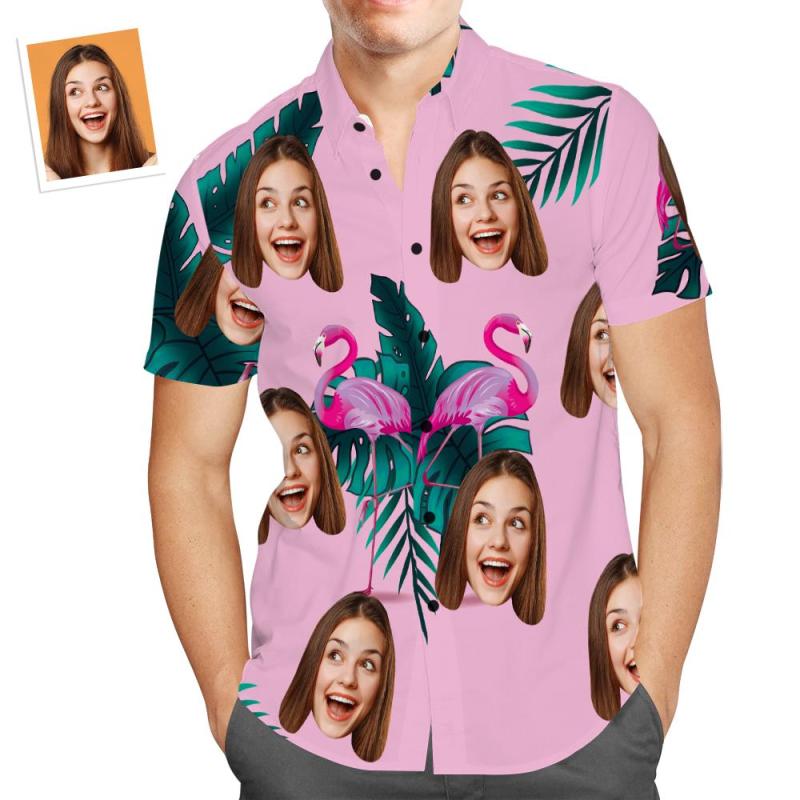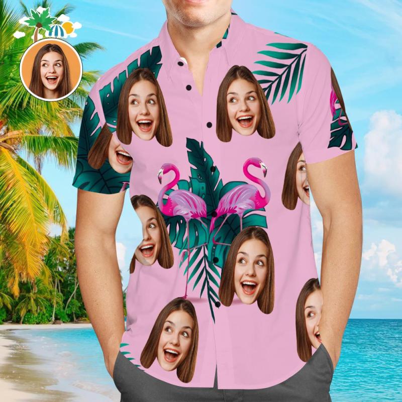 Custom Hawaiian with Dog Face Funny Flamingo Vacation Beach Shirt Gift for Pet Owner