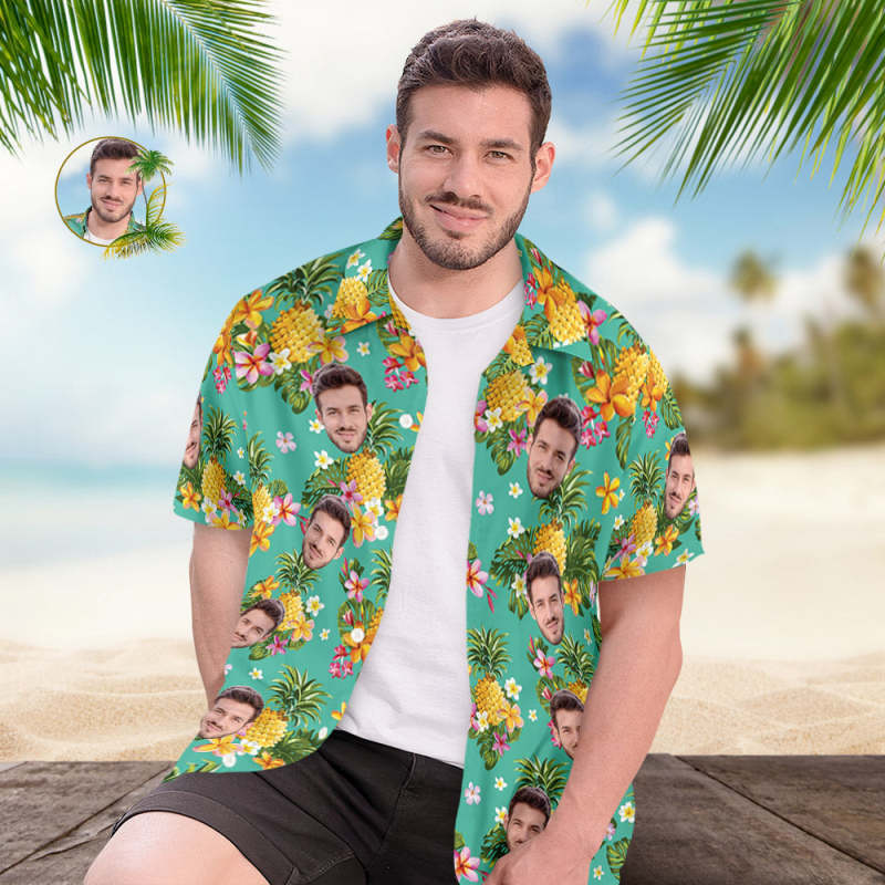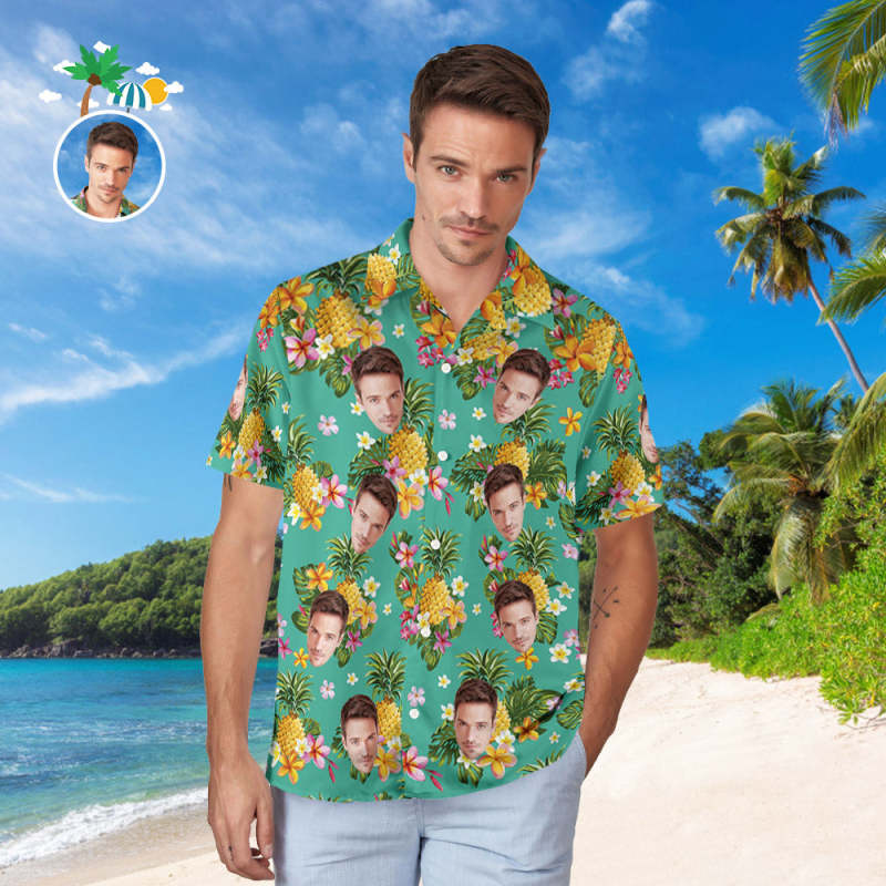 Personalised Shirt Men's Popular All Over Print Hawaiian Beach Shirt Holiday Gift - Hawaiian Flowers and Pineapples