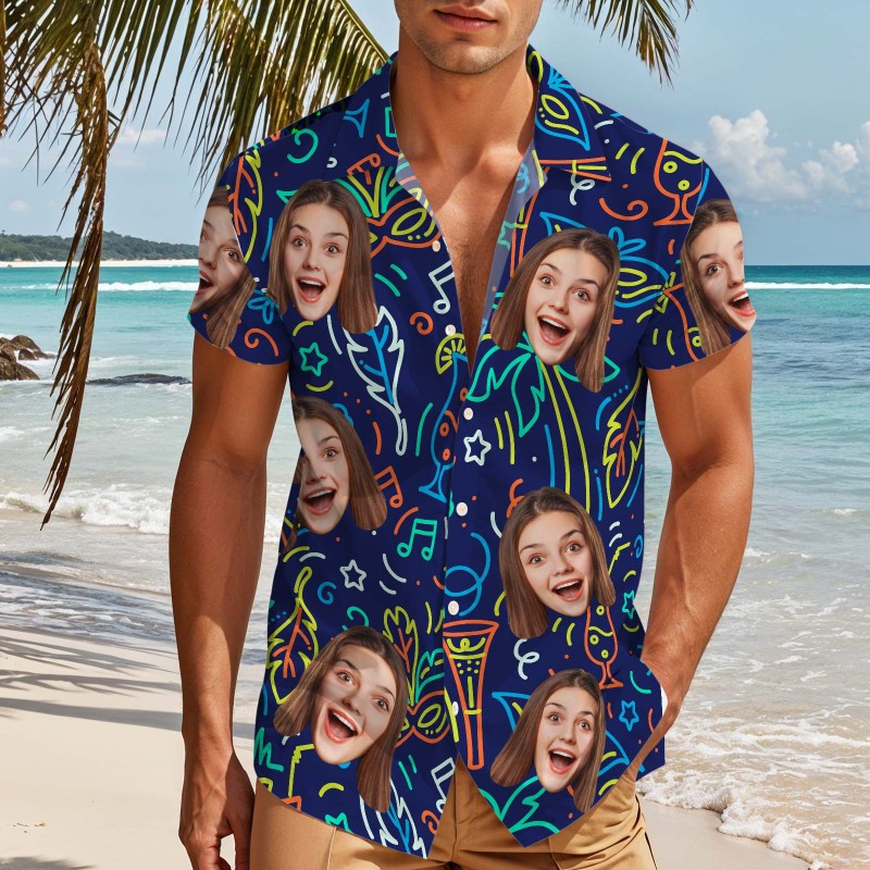 Custom Face Hawaiian Shirt Personalized Navy Blue Photo Party Beach Shirt