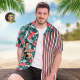 Custom Face Hawaiian Shirt Red flowers Men's All Over Print Striped Aloha Shirt