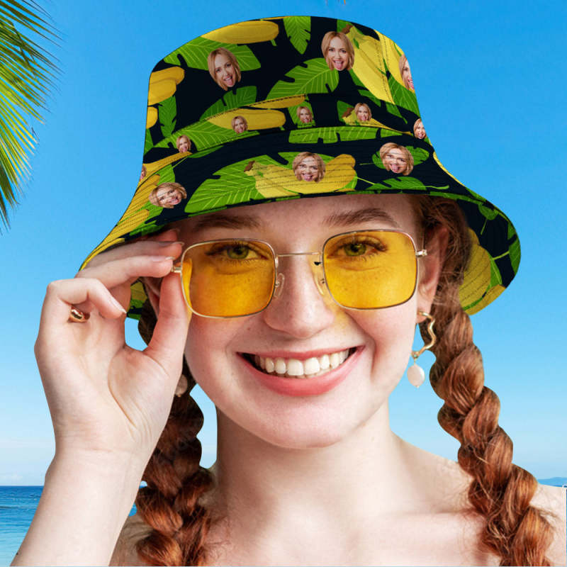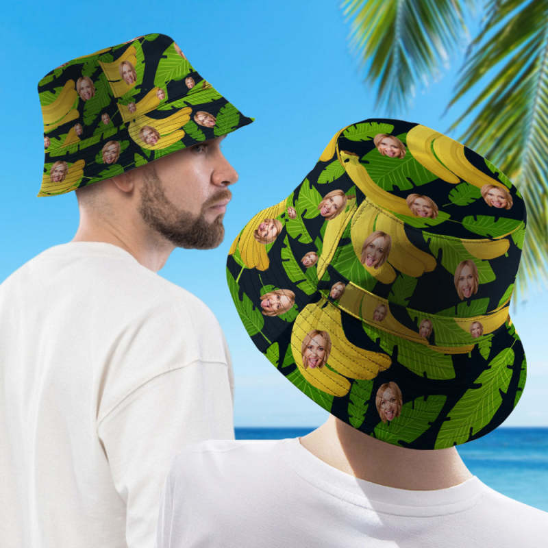 Custom Face Hawaiian Style Bucket Hat Double-Side-Wear Reversible Funny Fisherman Hat