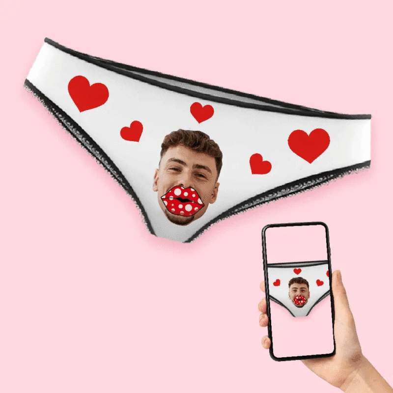 Custom Face Heart Boxers AR View Personalised Lips Thongs Valentine's Day Gift For Her