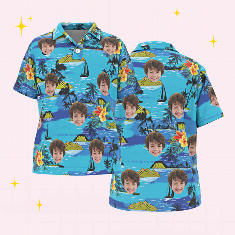 Custom Face Kids Polo Shirts Personalised Photo Hawaiian Style Shirt Vice City