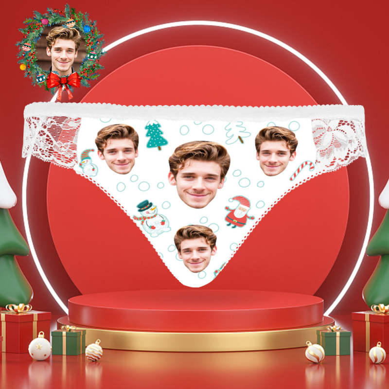 Custom Face Lace Panties Personalised Sexy Women Underwear Santa Claus and Snowman Christmas Gifts