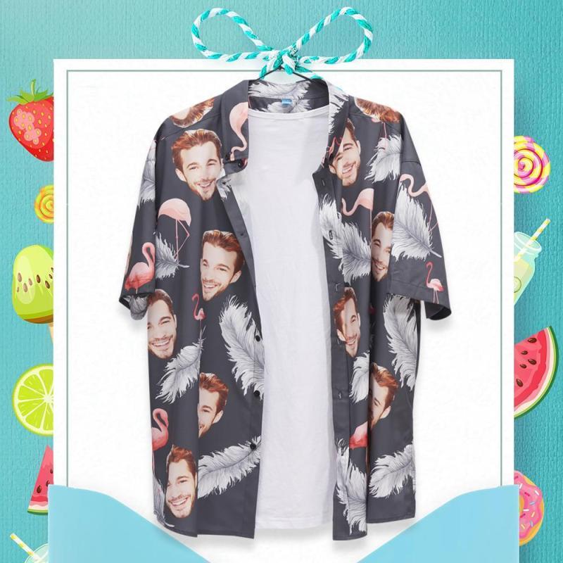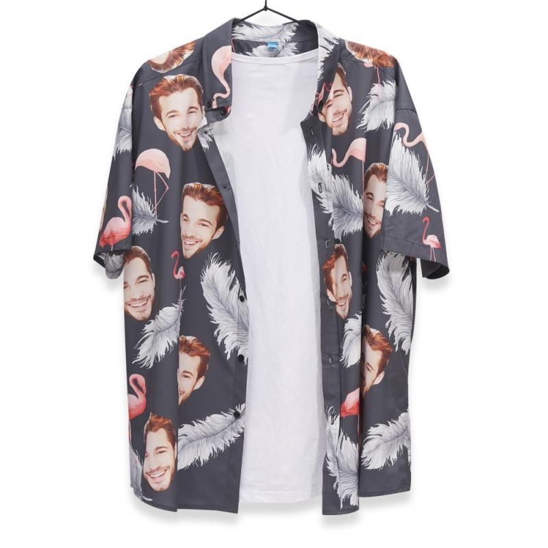 Personalised Face Hawaiian Shirt for Men Flamingo And Feather