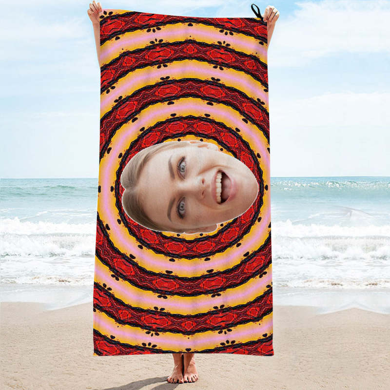 Fun Beach Towels Design Your Own Beach Towel Custom Face Red Vortex Beach Towel Personalised Photo Beach Towel Funny Gift