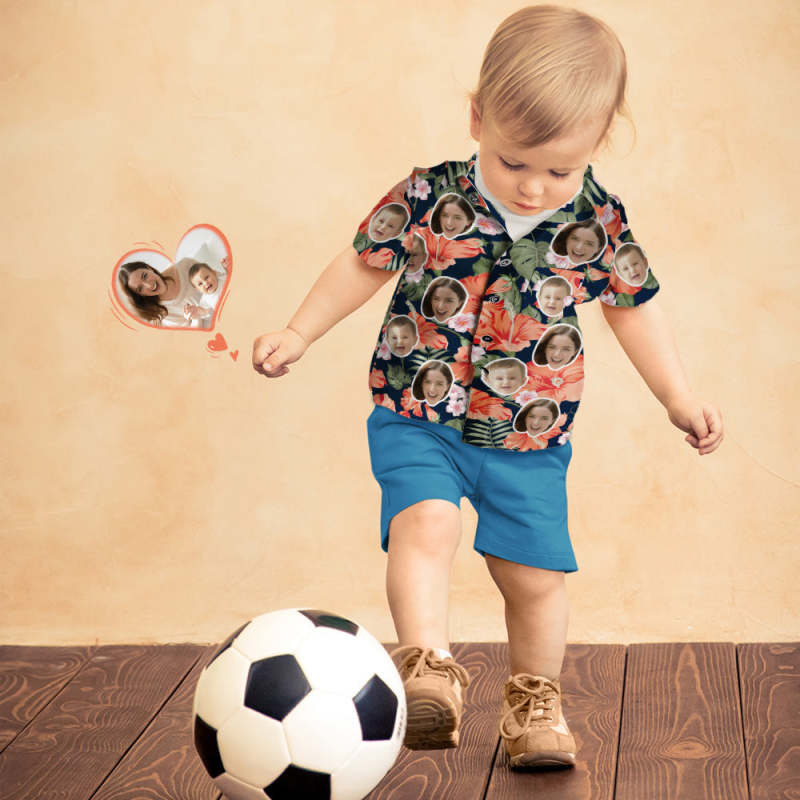 Mother's Day Gift Custom Face Shirt Women's and Kids Hawaiian Shirts Aloha Flowers