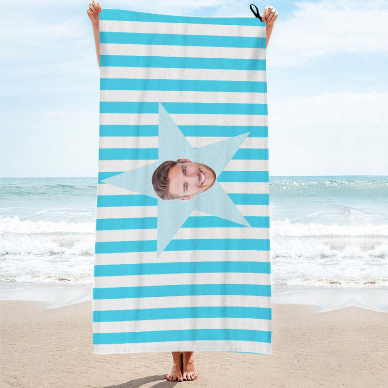 Custom Face Star Beach Towel Personalised Photo Beach Towel Customised Towel
