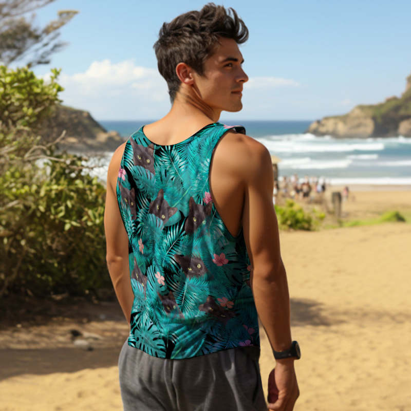 Custom Face Tank Tops Men's Sleeveless Shirt Black Cat
