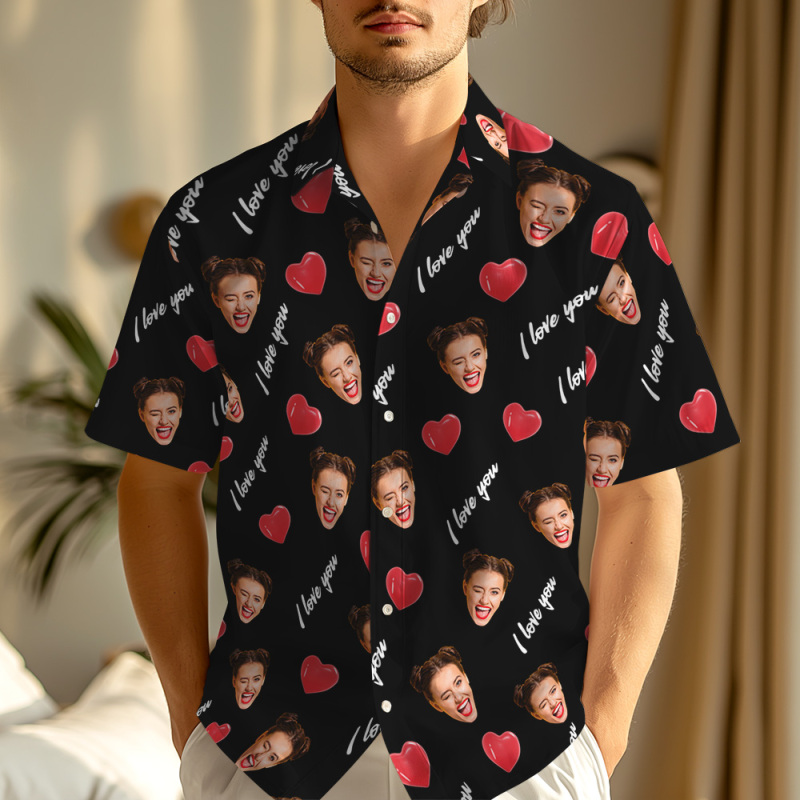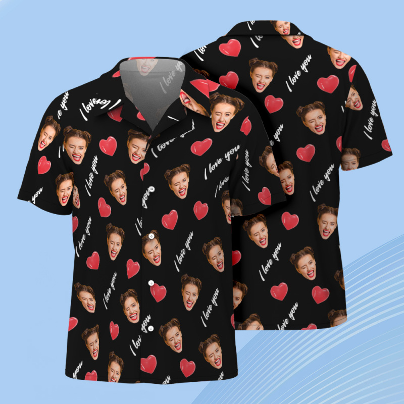 Custom Face & Text Black Heart Shirt Romantic Personalized Shirt for Couples, Anniversary or Date Night Outfit