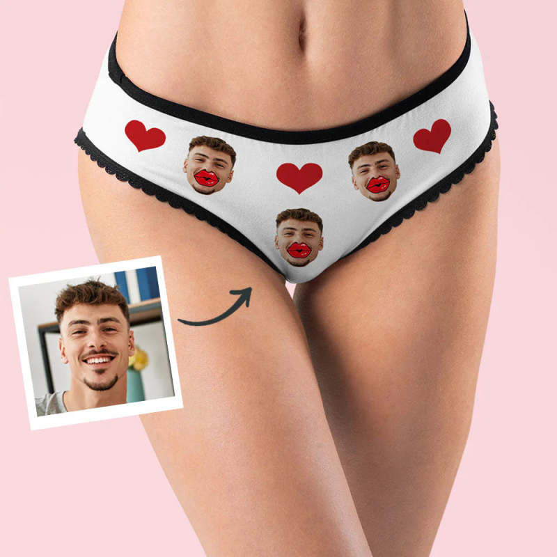 Custom Face Underwear Personalised Red Lips and Heart Underwear Valentine's Day Gift