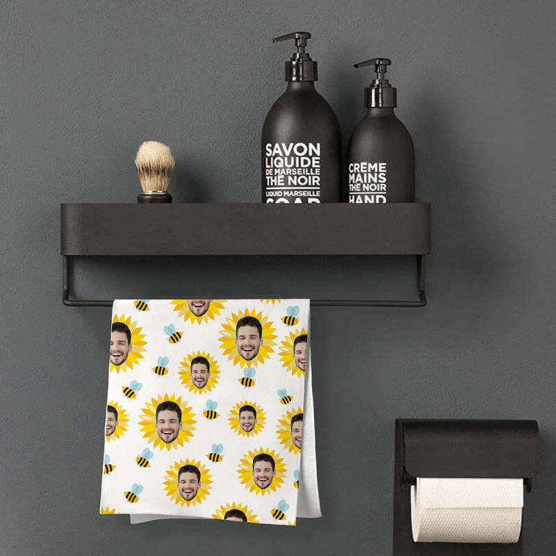 Custom Face White Sunflower Beach Towel Personalised Photo Beach Towel Customised Towel Gift