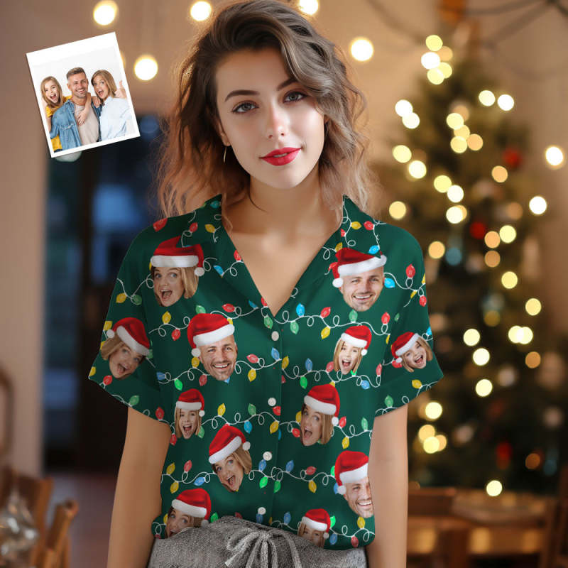 Custom Face Women's Hawaiian Shirts Personalised Photo Christmas Family Xmas Leds Aloha Shirts