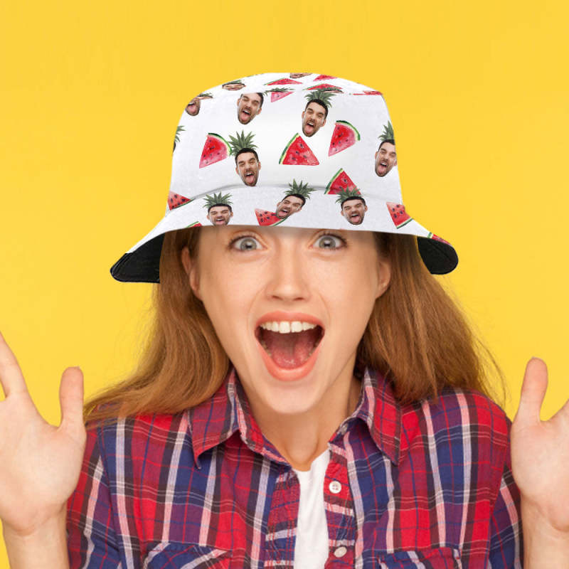 Custom Funny Bucket Hat Personalised Face Fruits Bucket Hat Summer Wide Brim Fisherman Hat Gifts