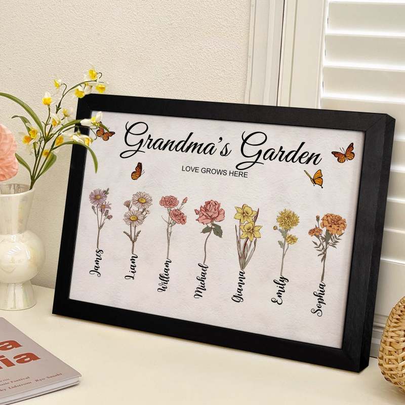 Custom Grandma's Garden Vintage Wooden Photo Frame Personalised Birth Flower Photo Frame Mother's Day Gift