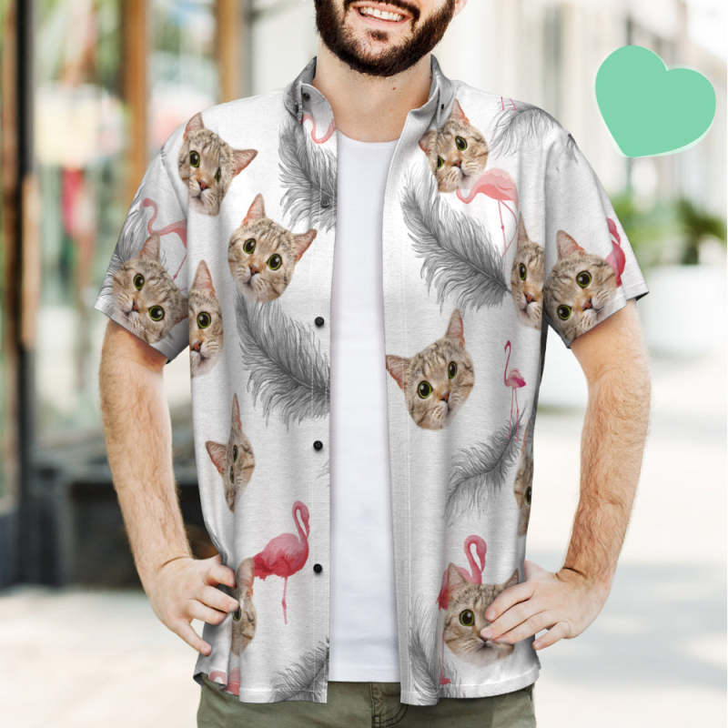 Custom Hawaiian Shirt Cat Face UK Flamingo