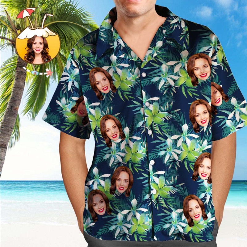 Custom Hawaiian Shirt with Face Custom Dog Face Hawaiian Shirt Leaves Tropical Shirts
