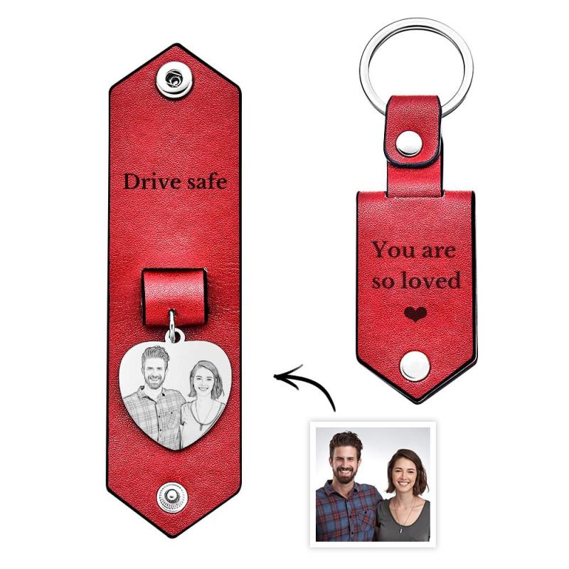 Custom Heart Shaped Photo Leather Keychain With Text Annivesary Gifts For Men