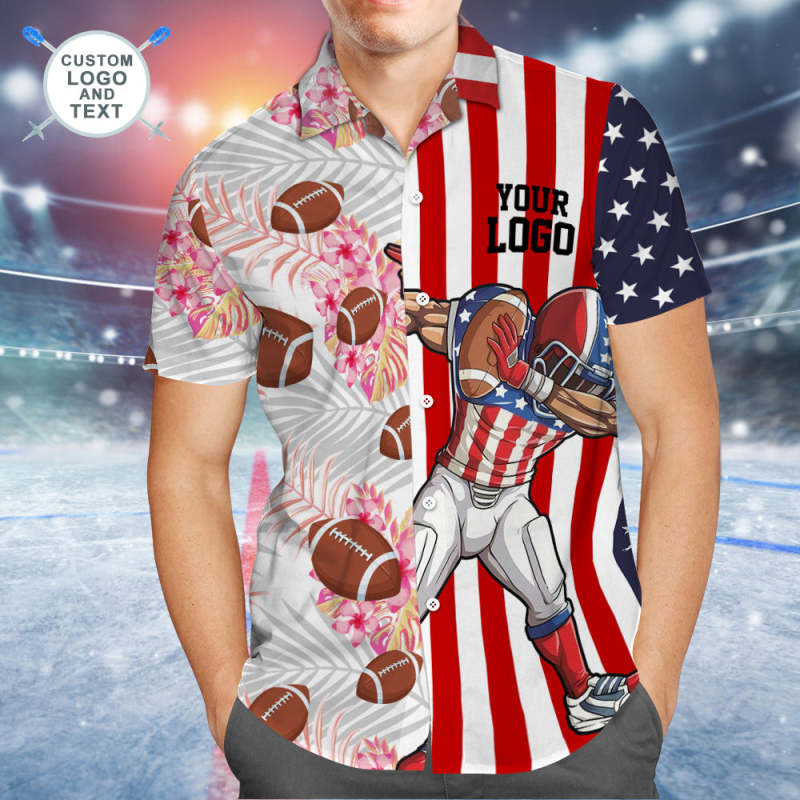 Custom Logo And Text Hawaiian Shirt Men's All Over Print Aloha Shirt Team Shirt - American Football Game
