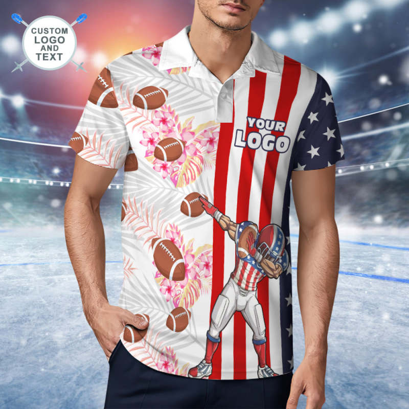 Custom LOGO Number Name Short Sleeve Polo Shirt With Rugby American Flag For Men