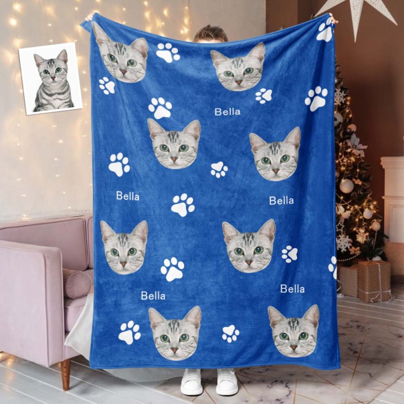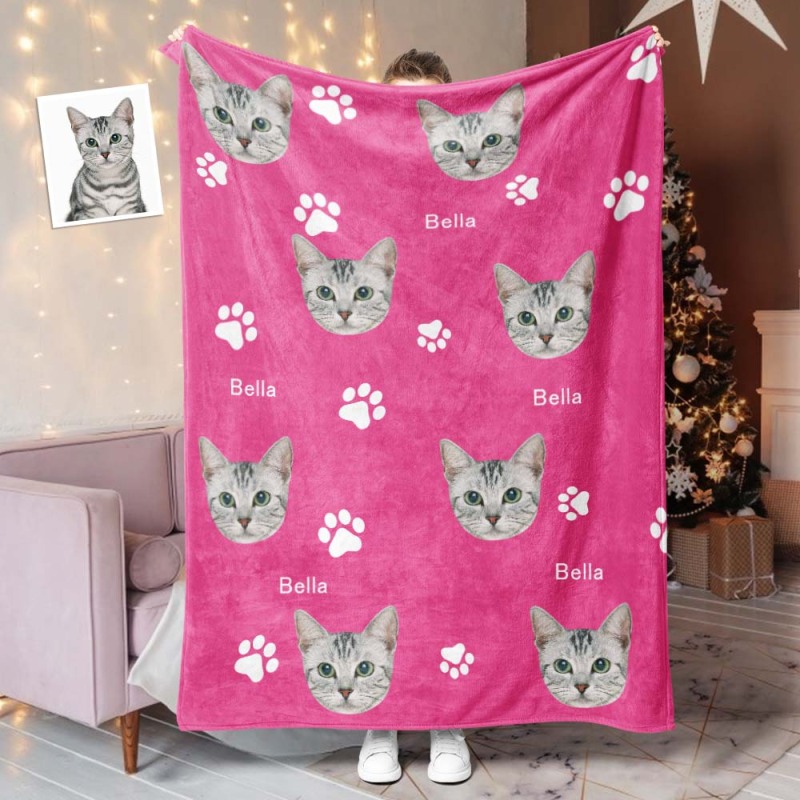 Custom Photo Name Blankets Custom Christmas Blankets Personalised Photo Fleece Blanket - Cute Pet Paw Prints