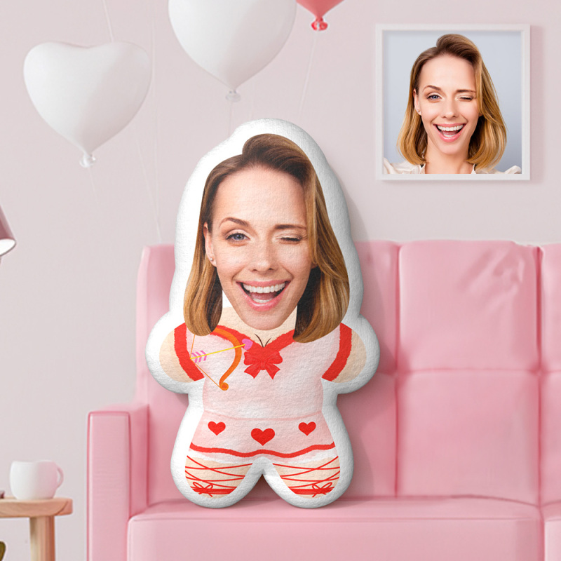 Custom Minime Throw Pillow Cupid Girl Face Pillow Personalized Photo Minime Pillow